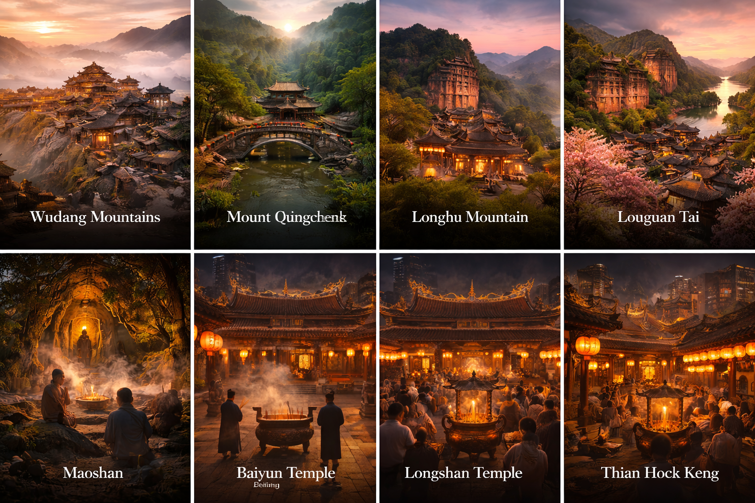 From the high peaks of Wudang to the temple courtyards of Beijing, Taipei, and Singapore, this series explores the sacred spaces where Taoism has endured across centuries. Together, these mountains and temples form a spiritual map of Taoist tradition — one shaped by philosophy, devotion, architecture, and the rhythms of daily life.
